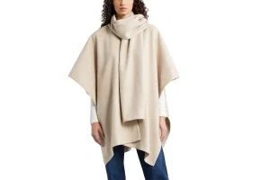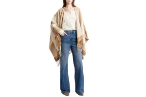 This pick comes closest to Carey’s shawl. Styled in a traditional Andean ruana design—similar to a poncho with an open front—it features a subtle plaid in light brown and ivory, finished with delicate fringe along the hem. The ruana also comes in black or green, offering versatile styling options.
