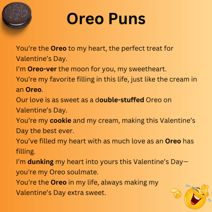 Oreo puns are a fun and creative way to express affection. Many Oreo-themed puns focus on sweetness, balance, and togetherness, making them ideal for Valentine’s Day cards, love notes, or playful messages between couples.